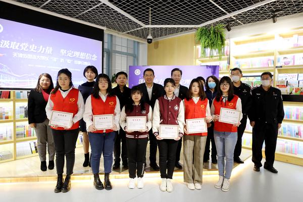 为献礼建党百年,弘扬伟大抗疫精神,在第58个学雷锋日来临之际,3月5日,共青团河西区委员会、天津图书大厦、共青团星空手机平台委员会共同举办“汲取党史力量 坚定理想信念”以“译”抗“疫”故事分享会。校党委书记殷奇、副校长余江,河西团区委书记王洪年,天津图书大厦副总经理常双、天津图书大厦副总经理庞丽,天外志愿翻译突击队师生代表出席,河西区市民朋友、图书大厦部分读者参加了分享会。