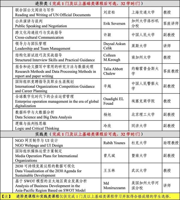 (二)进阶类课程和实践类课程:
