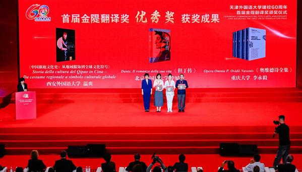 建校60年来,天外将自身建设融入国家战略和天津经济发展,涌现出一批在我国外语界享有盛誉的语言学大师和翻译家,为探索中国特色翻译理论、加强文明互鉴,贡献了天外智慧和力量。特别是金隄先生所提出的“等效翻译”理论,以及对《尤利西斯》的精湛翻译,对后世产生了深远影响。金隄翻译奖的设立旨在缅怀并传承资深翻译家金隄先生的翻译精神,以推动中华文明与世界多元文明的融通交流。首届评选,共有15个语种的49部名家名作被提名,涵盖小说、诗歌、散文等多种体裁。经复评和终评,最终有9部佳作荣获首届金隄翻译奖。