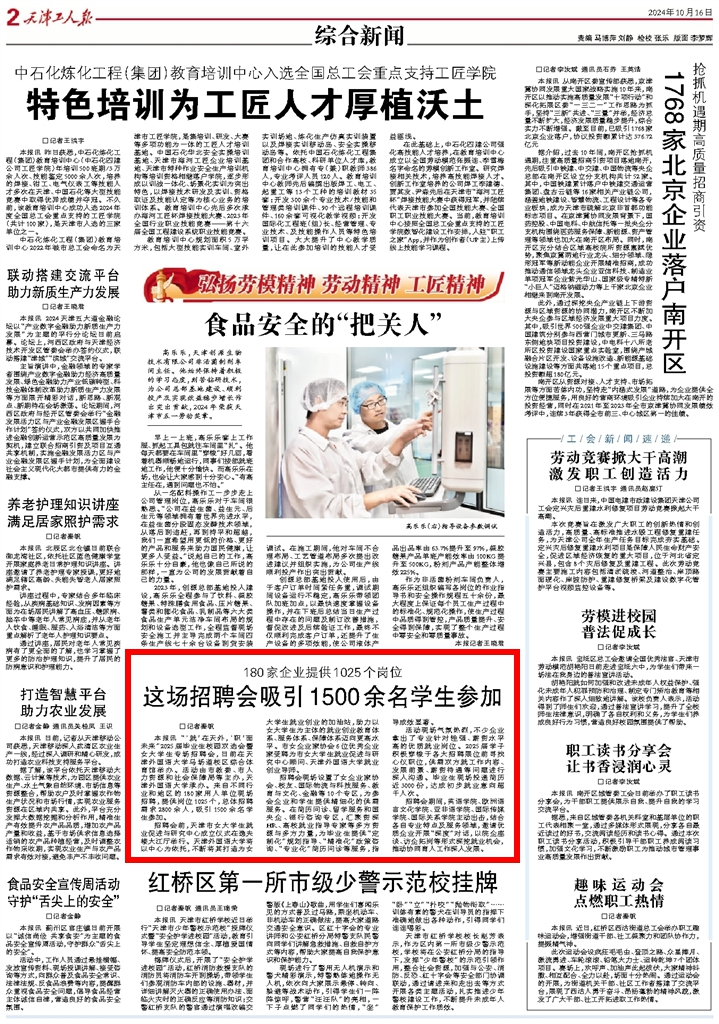 【天津工人报】《天津工人报》报道我校毕业生校园双选会