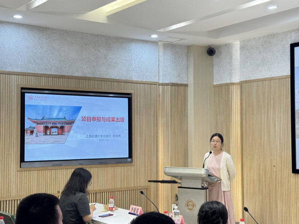 最后,上海交通大学出版社外语教材与学术出版中心主任张冠男教授介绍了中华学术外译和国家社科基金后期资助项目的概况、申报程序、结项和出版流程;介绍了学术专著、教材和课程成果的出版要求和流程,着重探讨学术成果“走出去”和数字化教材出版实践。