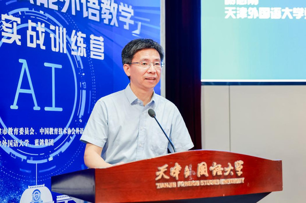 天津市教育委员会高教处副处长许晶充分肯定天外在AI赋能外语教学创新改革中取得的成果,强调了教师以前沿视野、创新手段投身人工智能时代外语教育教学的重要意义,表达了对本次训练营成果的殷切期待。