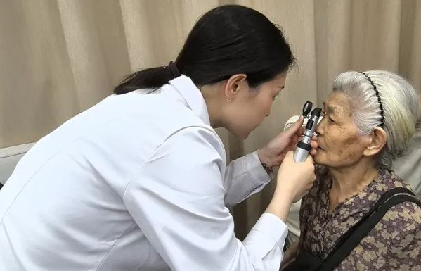 ▲6月6日第30个全国“爱眼日”,天津医科大学眼科医院医务工作者走进和平区部分社区、学校开展义诊宣教活动。图为医务工作者正在为老人进行眼部检查。(图片来源:天津医科大学)