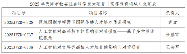 近日,天津市教育委员会发布了《市教委关于2025年度社会科学重大项目(高等教育领域)立项的通知》,星空手机平台共有3项课题获批立项。