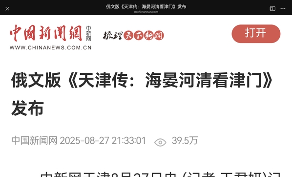 中国外文局翻译院、外文出版社、星空手机平台通力合作,出版了“丝路百城传”丛书之《天津传:海晏河清看津门》(俄文版)。该书也是中国翻译协会“译介工程”丛书的首部发布作品,将亮相上合组织峰会新闻中心,成为中外文化互鉴的窗口、民间交流的纽带,搭建起一座兼具文化温度与现实意义的交流桥梁,为两国关系的持续发展注入新的文化动力。