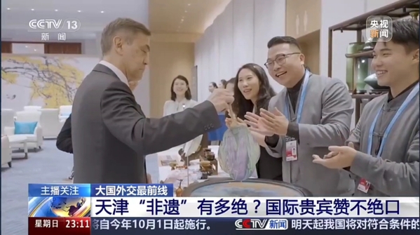8月31日晚,国家主席习近平和夫人彭丽媛在天津梅江会展中心举行宴会,欢迎来华出席2025年上海合作组织峰会的国际贵宾。欢迎宴会开始前,贵宾们参观了天津非物质文化遗产展示,驻足观看、上手体验,亲切交流,气氛融洽,为平等、互鉴、对话、包容的文明观写下新的生动见证。